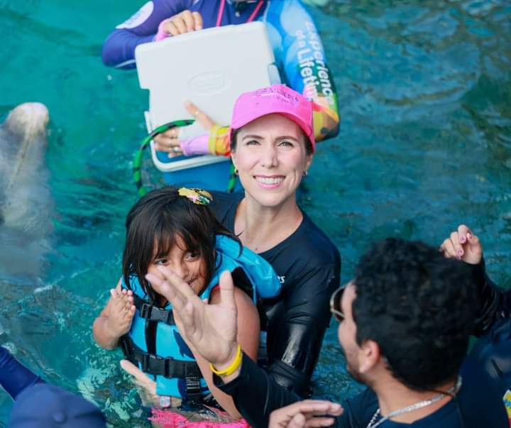 En su intervención, la alcaldesa agradeció la colaboración de los directivos de Dolphin Discovery al afirmar que es una empresa socialmente responsable, por lo que recalcó que trabajará con todo el corazón y sensibilidad para que las niñas, niños, personas con discapacidad y adultos que requieran la Delfinoterapia tengan acceso a ella.