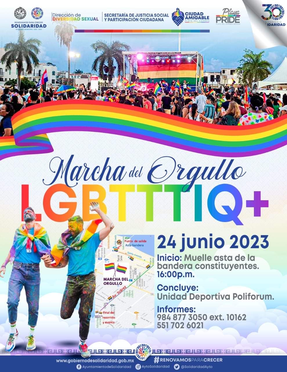 Playa del Carmen, Solidaridad, 7 de junio del 2023.- Durante el mes del orgullo LGBTTTIQ+, el gobierno de Solidaridad que preside Lili Campos invita a dicha comunidad a que aprovechen los subsidios fiscales del 100% del pago para las bodas colectivas y un 50% de subsidio, en el Acta de Cambio de Identidad, durante el presente mes. También está programada la marcha del orgullo y desfile con carros alegóricos.