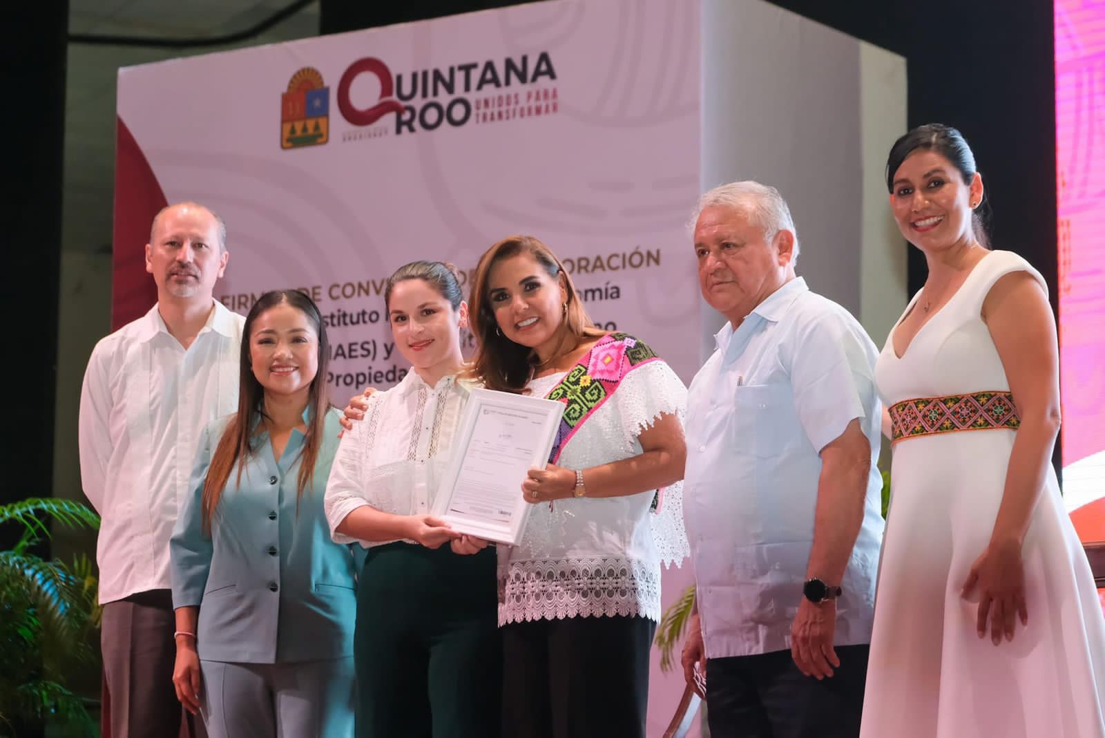 Durante el evento, realizado en el teatro del Centro Cultural Universitario de la Universidad Autónoma de Quintana Roo, Mara Lezama destacó que además de sumarse al Nuevo Acuerdo, ambos convenios ayudarán a capacitar a servidores públicos, cooperativas, cooperativas de ahorro y préstamo, ejidos, sociedades de producción rural, para proteger sus creaciones y hacer crecer más rápido la economía social.
