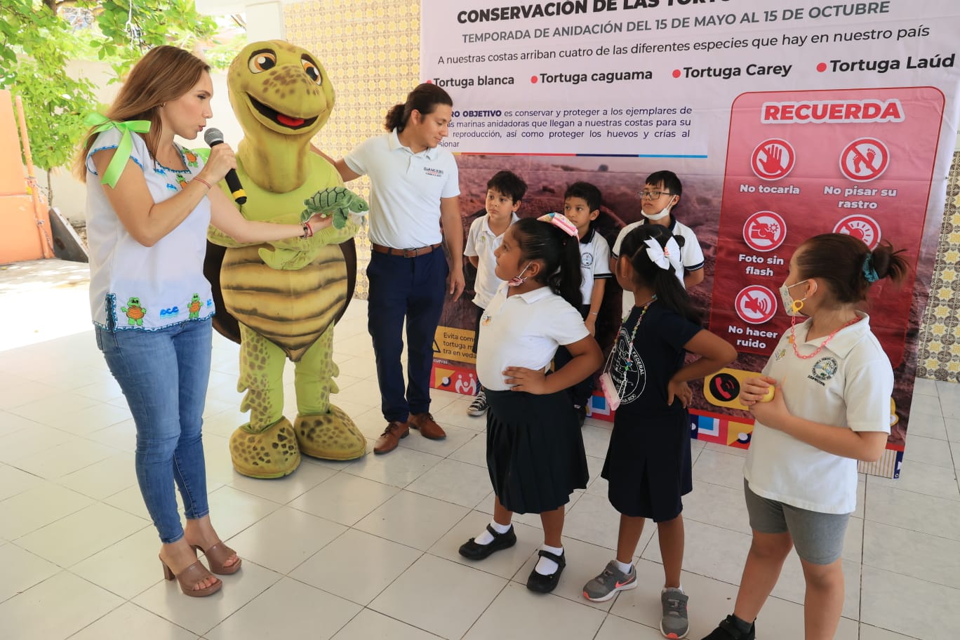 Isla Mujeres es un habitat natural de tortugas, es por ello que la alcaldesa habló con los niños sobre el cuidado de estos quelonios y la preservación de sus nidos, evitando tirar basura ni plásticos en las playas, así como no dejar popotes.