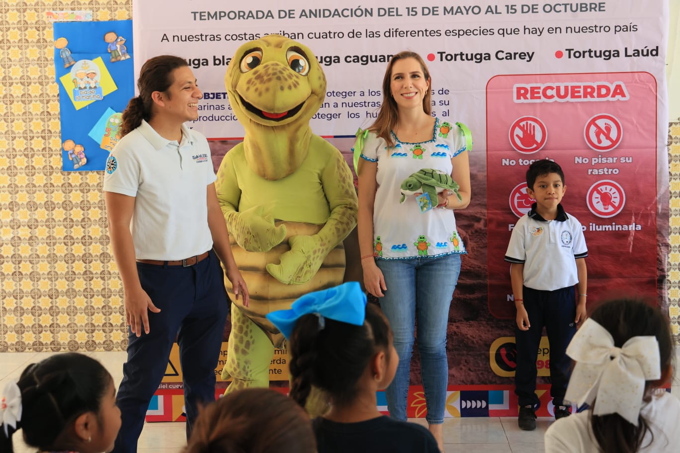 Isla Mujeres es un habitat natural de tortugas, es por ello que la alcaldesa habló con los niños sobre el cuidado de estos quelonios y la preservación de sus nidos, evitando tirar basura ni plásticos en las playas, así como no dejar popotes.