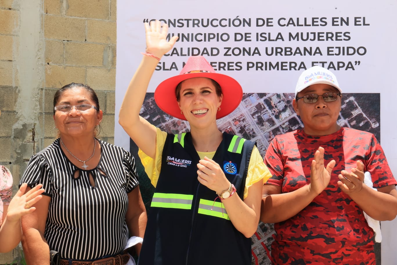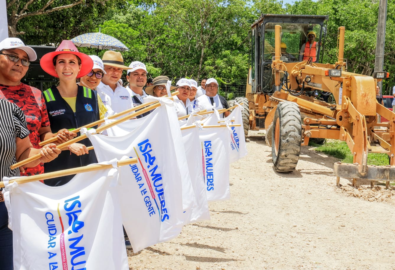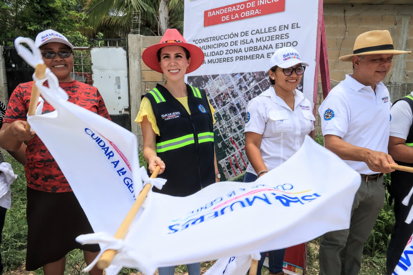ISLA MUJERES, 15 DE JUNIO DE 2023.- Para continuar mejorando la calidad de vida de las familias de la Zona Continental de Isla Mujeres, luego de muchos años de estar en el abandono, la presidenta municipal de Isla Mujeres, Atenea Gómez Ricalde junto con las y los vecinos dio el banderazo de la construcción de calles en la localidad zona urbana ejido Isla Mujeres, Primera Etapa.