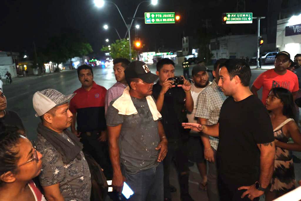 Cancún, Q. R. a 16 de junio de 2023.- El secretario general del Ayuntamiento, Pablo Gutiérrez Fernández, en representación de la Presidenta Municipal, Ana Paty Peralta, atendió a los vecinos de la Sm. 91 la noche de esta viernes, instándolos a mantener la calma y colaborar con las autoridades correspondientes.