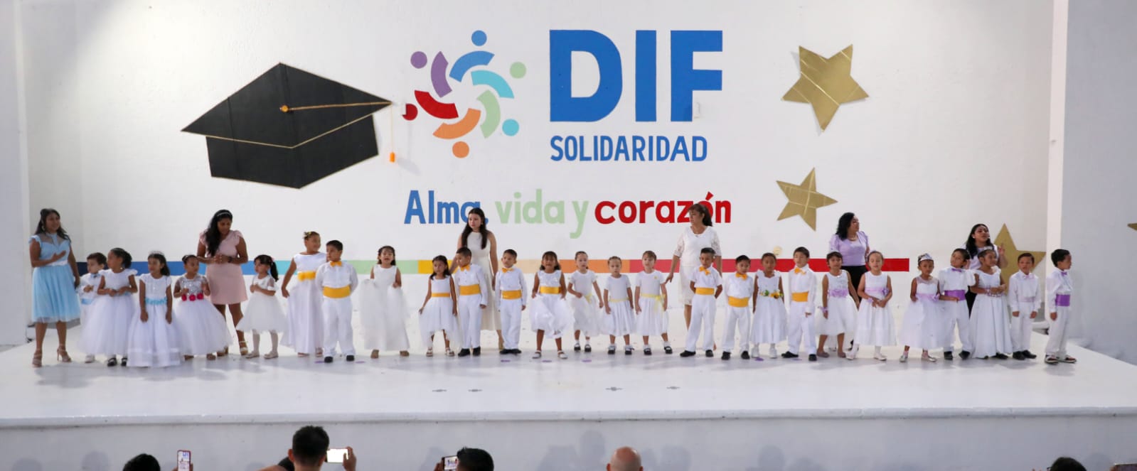 Con el objetivo de contribuir con el sano crecimiento de la infancia, el Gobierno de Solidaridad, a través del DIF Municipal, realizó la clausura del ciclo escolar de los cuatro Centros Asistenciales de Desarrollo Infantil (CADI), en la que 30 niñas y niños concluyeron sus estudios de nivel preescolar de manera satisfactoria.