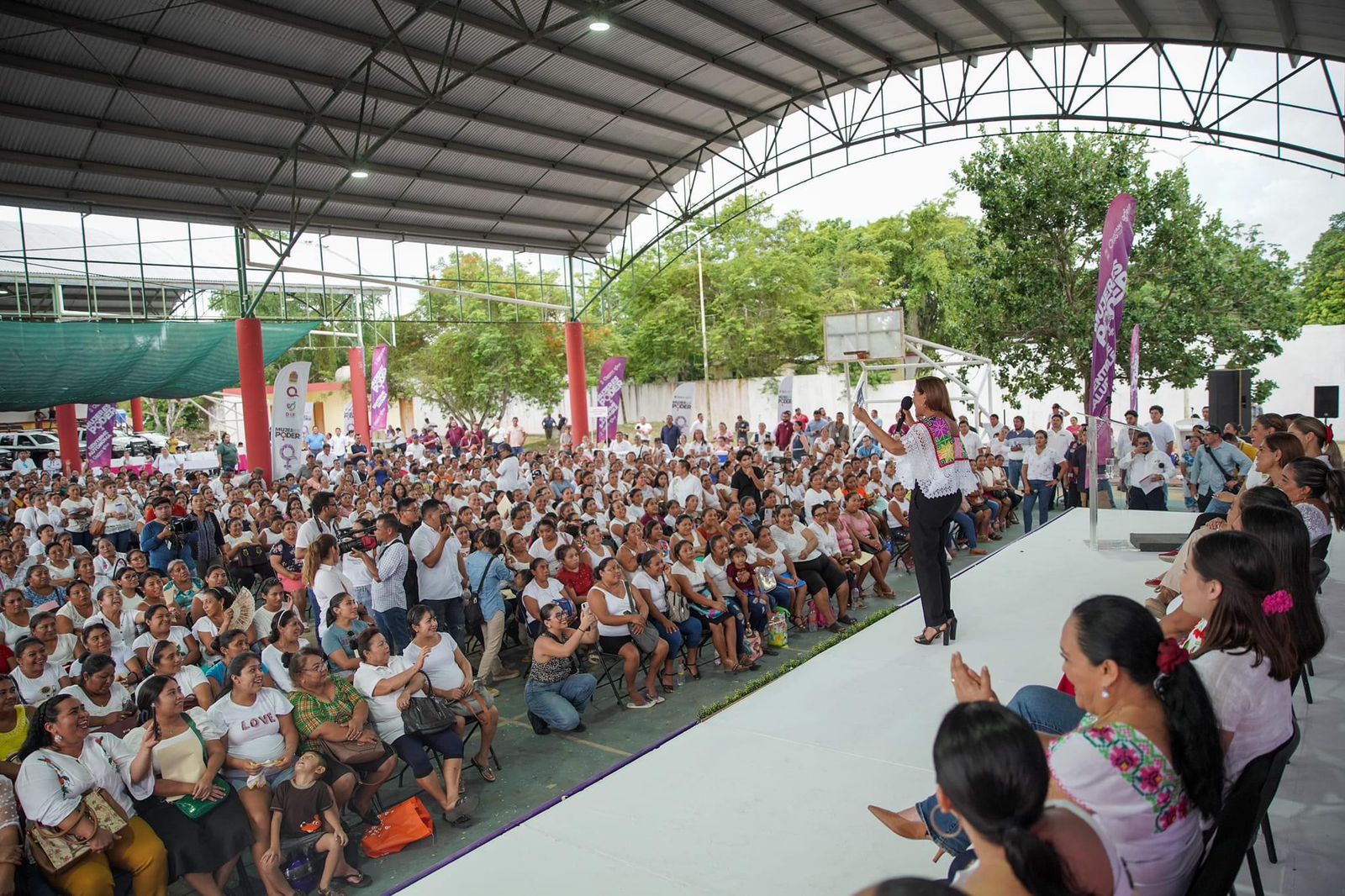 En el domo doble de la colonia Cecilio Chí, en el municipio de Felipe Carrillo Puerto, Mara Lezama estuvo con las beneficiarias del programa como siempre lo ha hecho, cercana, escuchándolas en territorio. “Yo sí les creo, y también les digo que no están solas, cuentan con su gobernadora” les dijo la Gobernadora para luego entregarles su tarjeta Mujer es Poder.