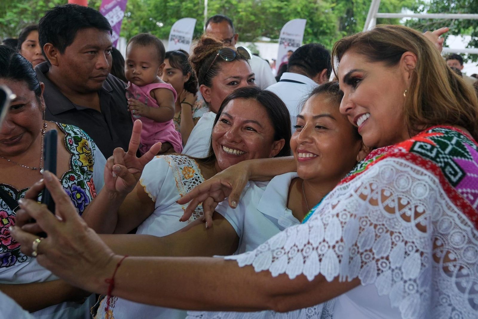 En el domo doble de la colonia Cecilio Chí, en el municipio de Felipe Carrillo Puerto, Mara Lezama estuvo con las beneficiarias del programa como siempre lo ha hecho, cercana, escuchándolas en territorio. “Yo sí les creo, y también les digo que no están solas, cuentan con su gobernadora” les dijo la Gobernadora para luego entregarles su tarjeta Mujer es Poder.