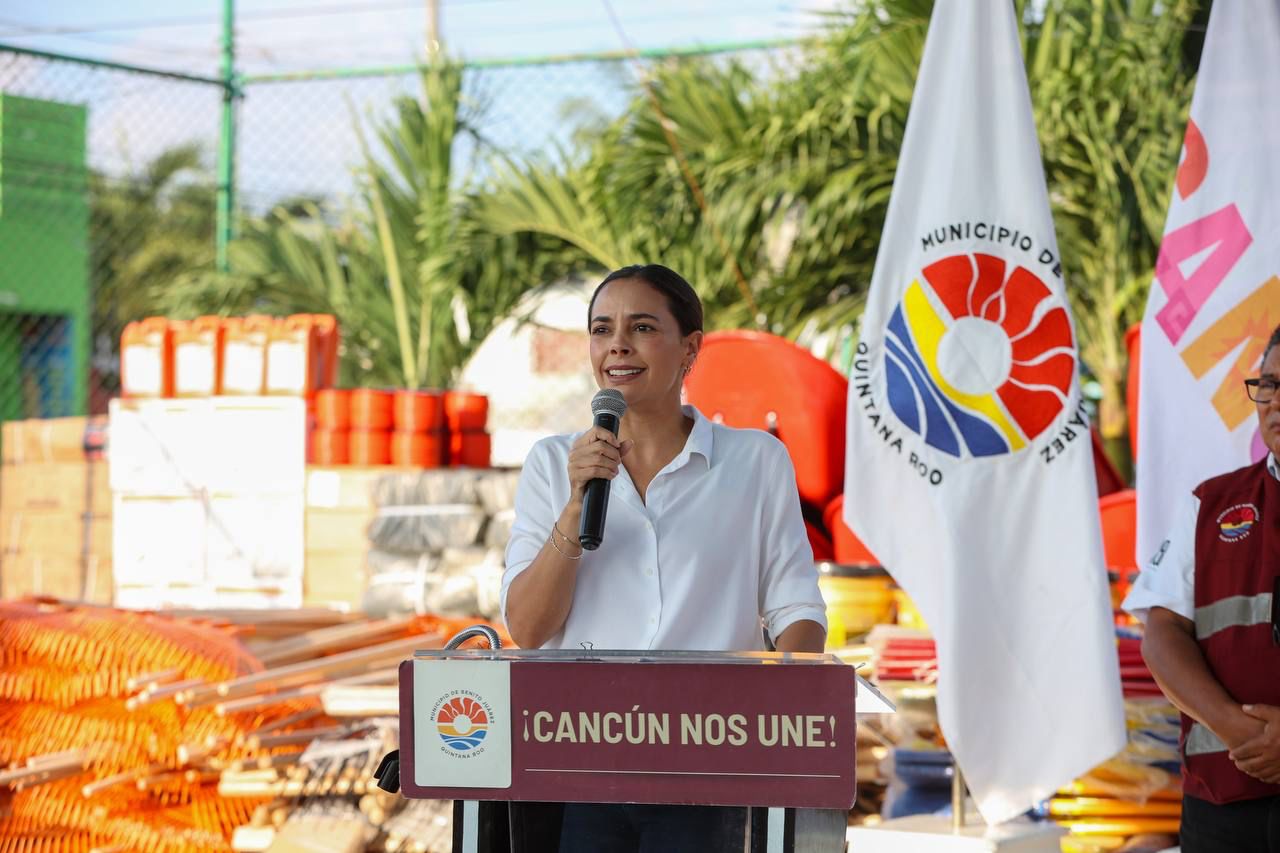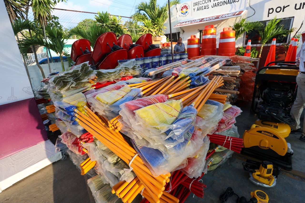 Cancún, Q. R., a 07 de agosto de 2023.- Personal de la dirección de Parques y Áreas Jardinadas, adscritos a la Dirección General de Servicios Públicos, recibieron de manos de la Presidenta Municipal, Ana Paty Peralta, herramientas y equipo para el mantenimiento de la infraestructura urbana, parques, espacios públicos y áreas comunes del municipio de Benito Juárez.