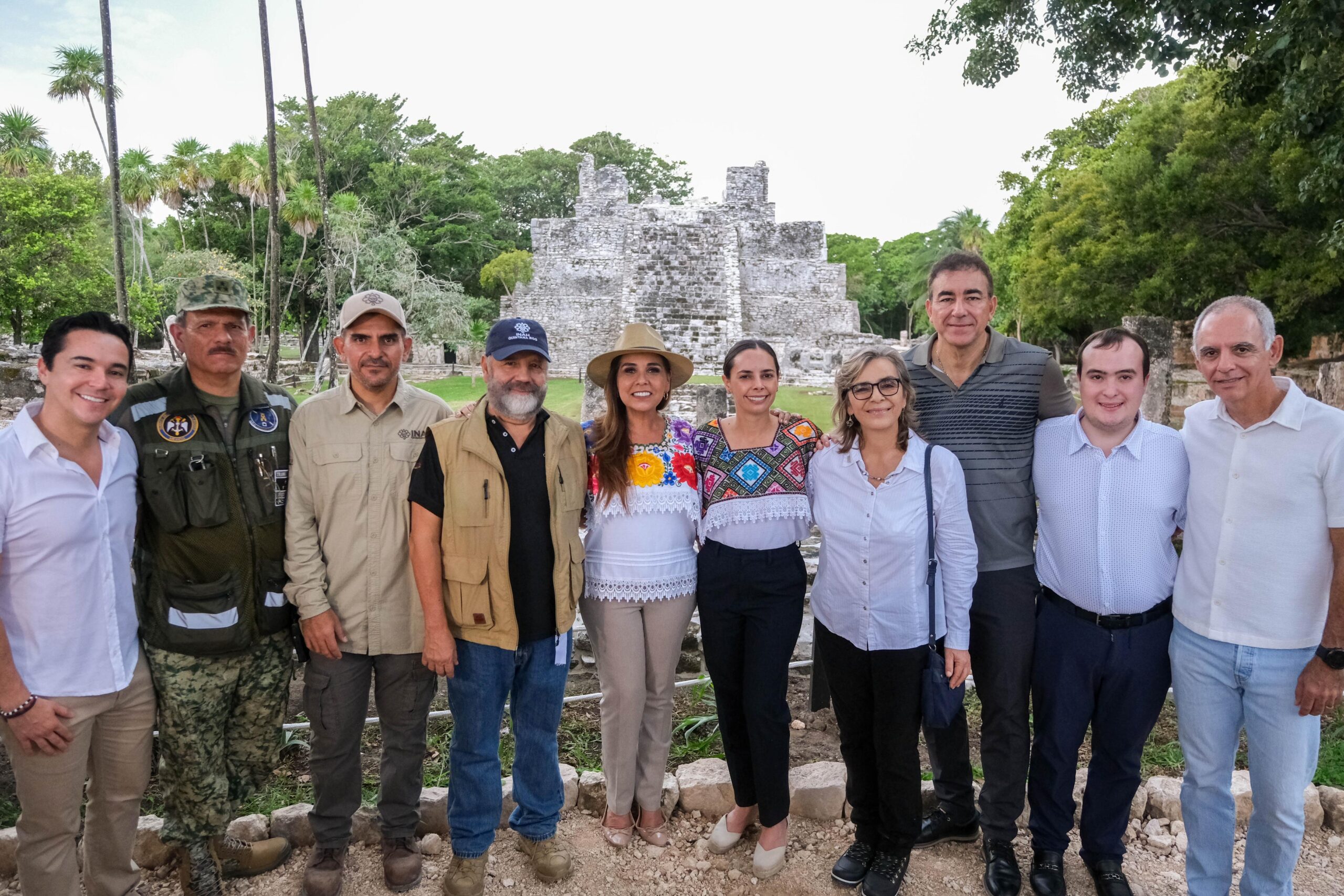 Mara Lezama felicitó a las y los trabajadores del INAH, a las y los arqueólogos, por el trabajo extraordinario desplegado para el rescate y restauración de esta zona arqueológica. También al personal de la SEDENA por las obras de infraestructura. Recordó que el gobierno del estado donó el terreno.