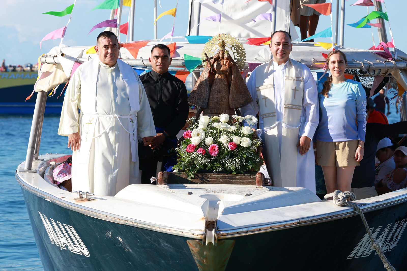 Durante la travesía hacia Contoy se realizó el rezo del rosario y cantos religiosos a cargo del coro parroquial. En la capilla de Contoy la misa en honor a la Santa Patrona de los pescadores fue oficiada por el padre Rafael González Guzmán.