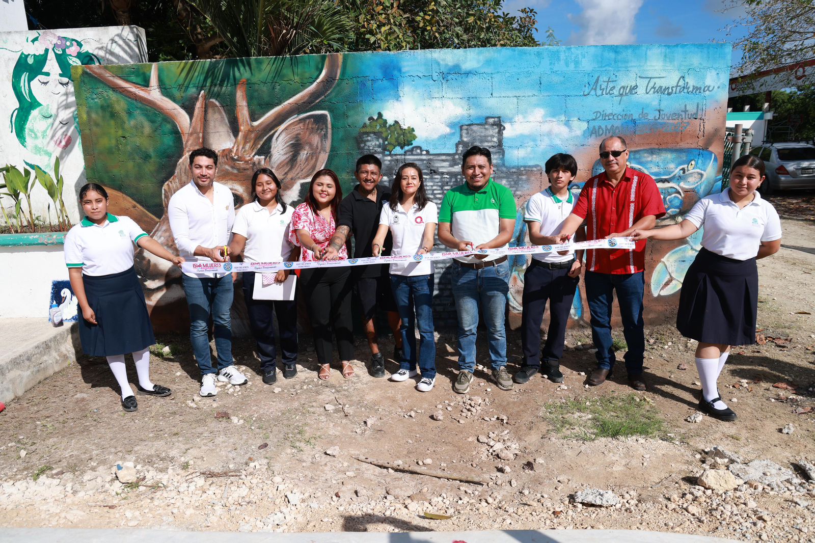 Posteriormente, se inauguró un colorido mural elaborado dentro del programa “Arte que Transforma”, el cual busca rescatar espacios públicos y enviar mensajes de paz, unión y esperanza a las juventudes.