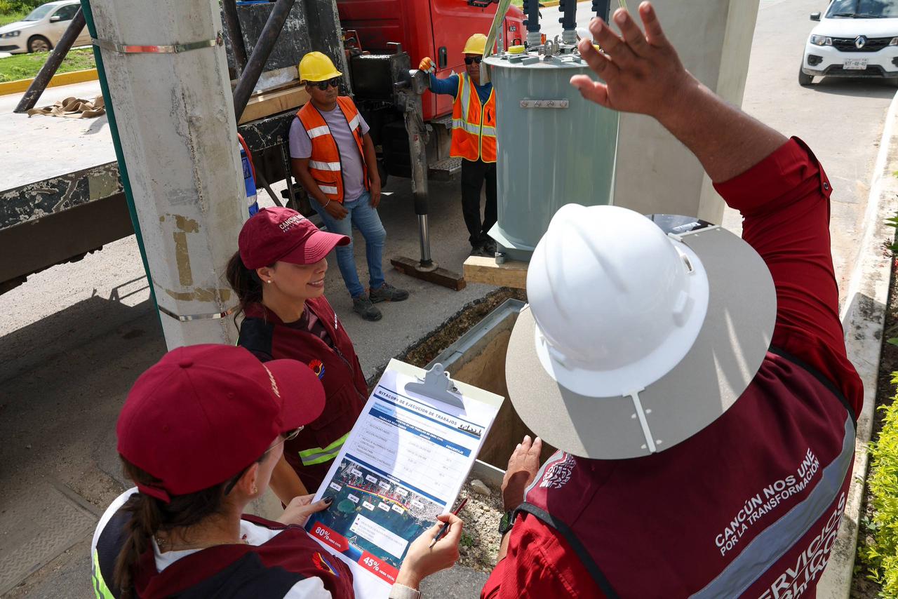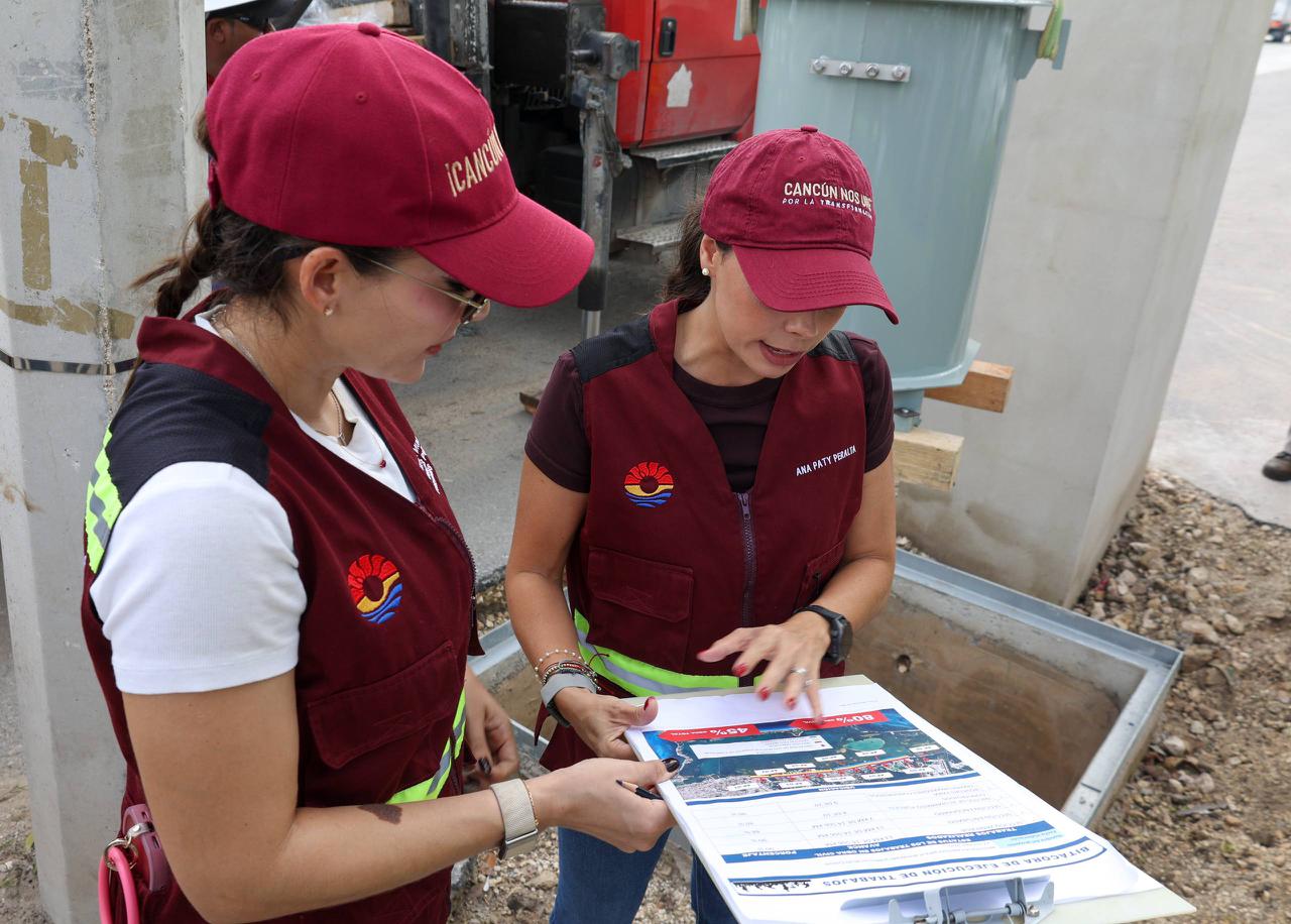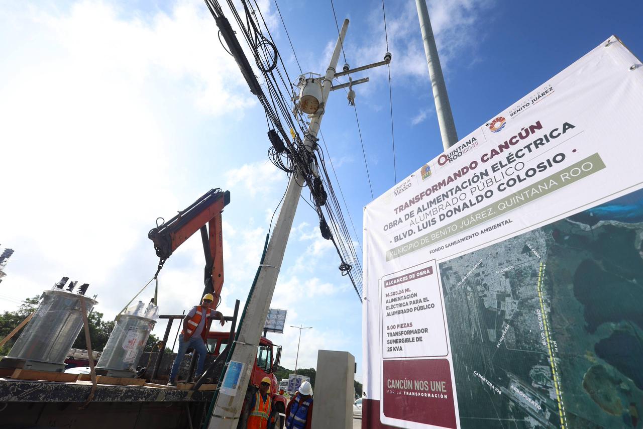 Cancún, Q. R., a 27 de octubre de 2025.- Con el fin de consolidar un Cancún más seguro, eficiente y competitivo, la Presidenta Municipal, Ana Paty Peralta, supervisó los avances del proyecto de alimentación eléctrica para el alumbrado público en el Boulevard Luis Donaldo Colosio, que suman 45 por ciento de la obra total y 80 por ciento de la obra civil.