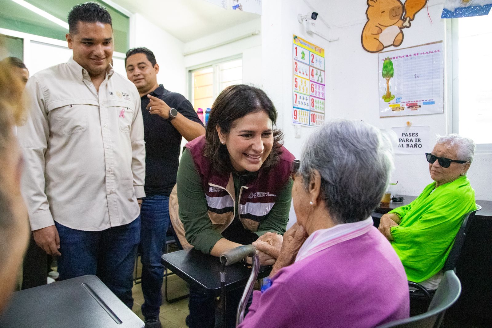 Previo al acto de entrega, la Presidenta Municipal realizó un recorrido por las instalaciones del DIF Playa del Carmen, acompañada por el presidente honorario de la institución, Eduardo Asencio; del secretario de Salud Municipal, José Uribe; y del director de Asistencia Social del DIF, Jesús Góngora, para saludar personalmente a las y los beneficiarios.