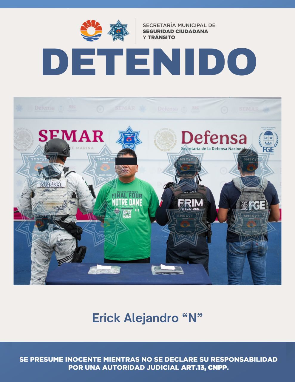 Por estos hechos, Erick Alejandro “N”, de 35 años de edad, fue detenido y puesto a disposición de la Fiscalía General del Estado para los trámites legales correspondientes