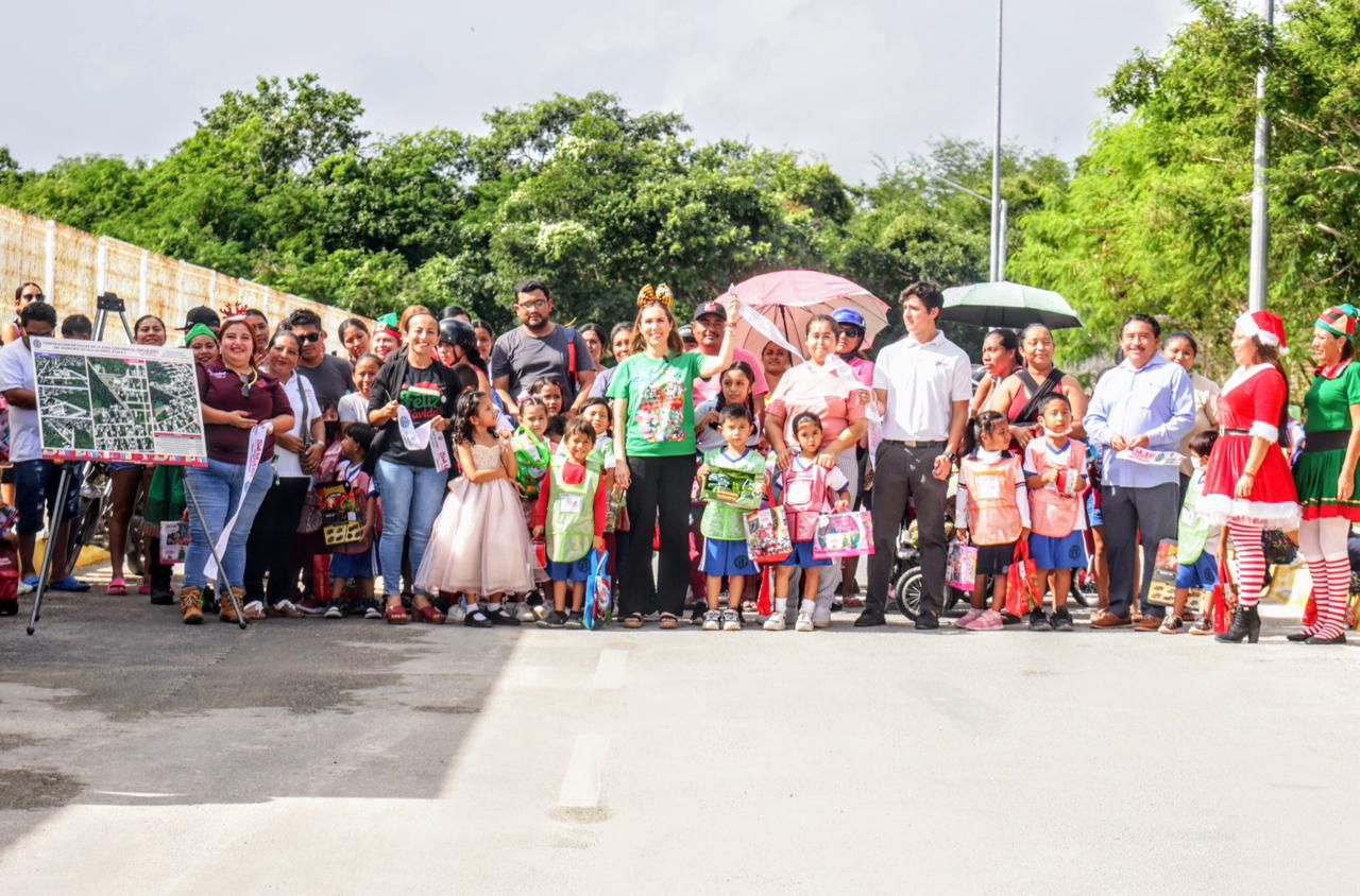 Isla Mujeres, Quintana Roo, a 10 de diciembre de 2025.- Cumpliendo un compromiso más con las familias de Ciudad Mujeres y con el objetivo de dignificar los accesos a las escuelas, la Presidenta Municipal de Isla Mujeres, Atenea Gómez Ricalde, entregó hoy la obra de pavimentación de la calle de acceso principal al kínder Matilde Petra Montoya Lafragua, ubicado en la colonia San Valentín de la Zona Continental.