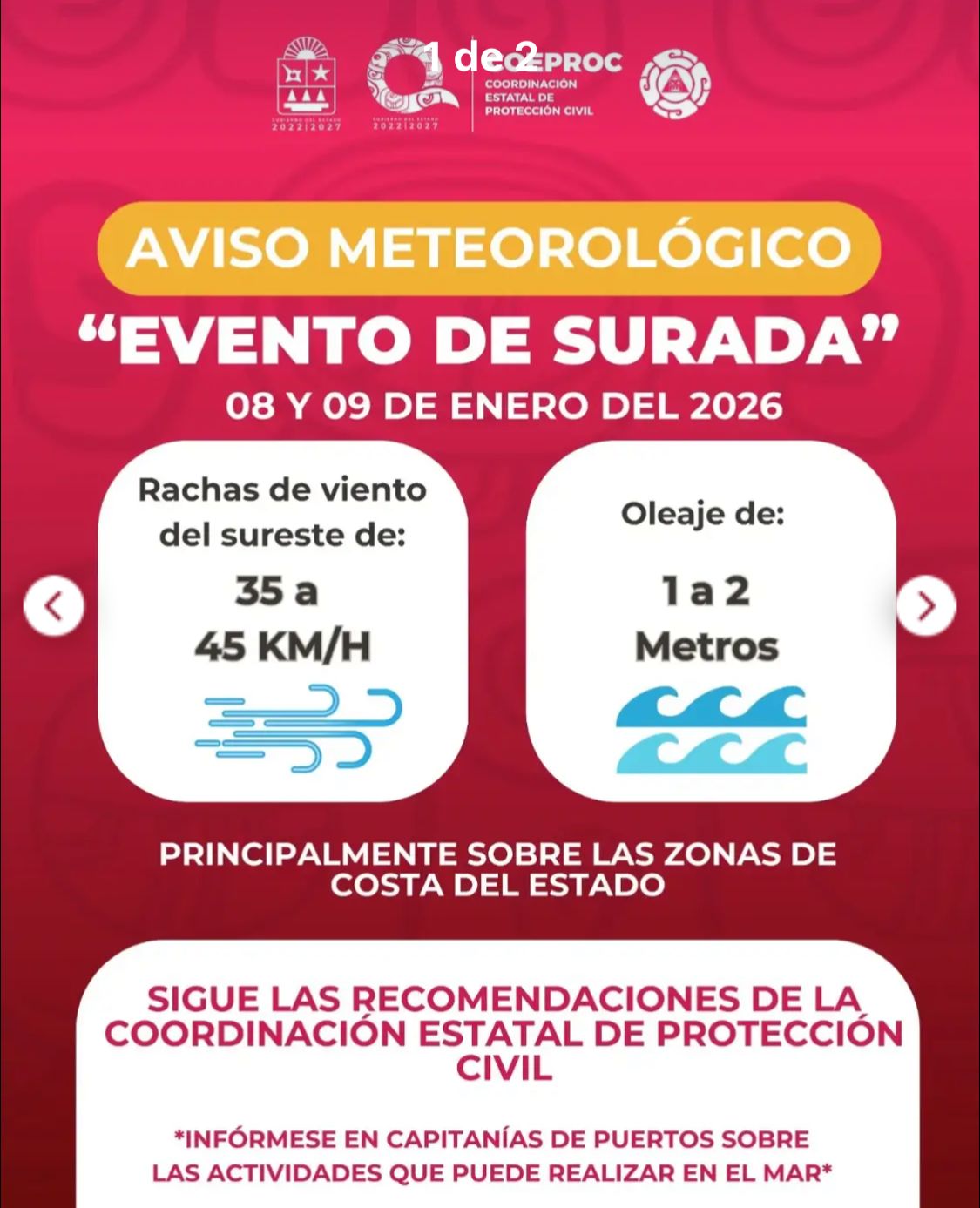 Al respecto, la secretaria de Medio Ambiente Sustentable y Cambio Climático, Samantha Álvarez Hernández, explicó que a diferencia de los vientos del norte, que suelen ayudar a alejar el material acumulado en la franja costera, la surada provoca que tanto el sargazo como una gran cantidad de basura marina lleguen a las playas, afectando su imagen y condiciones ambientales.