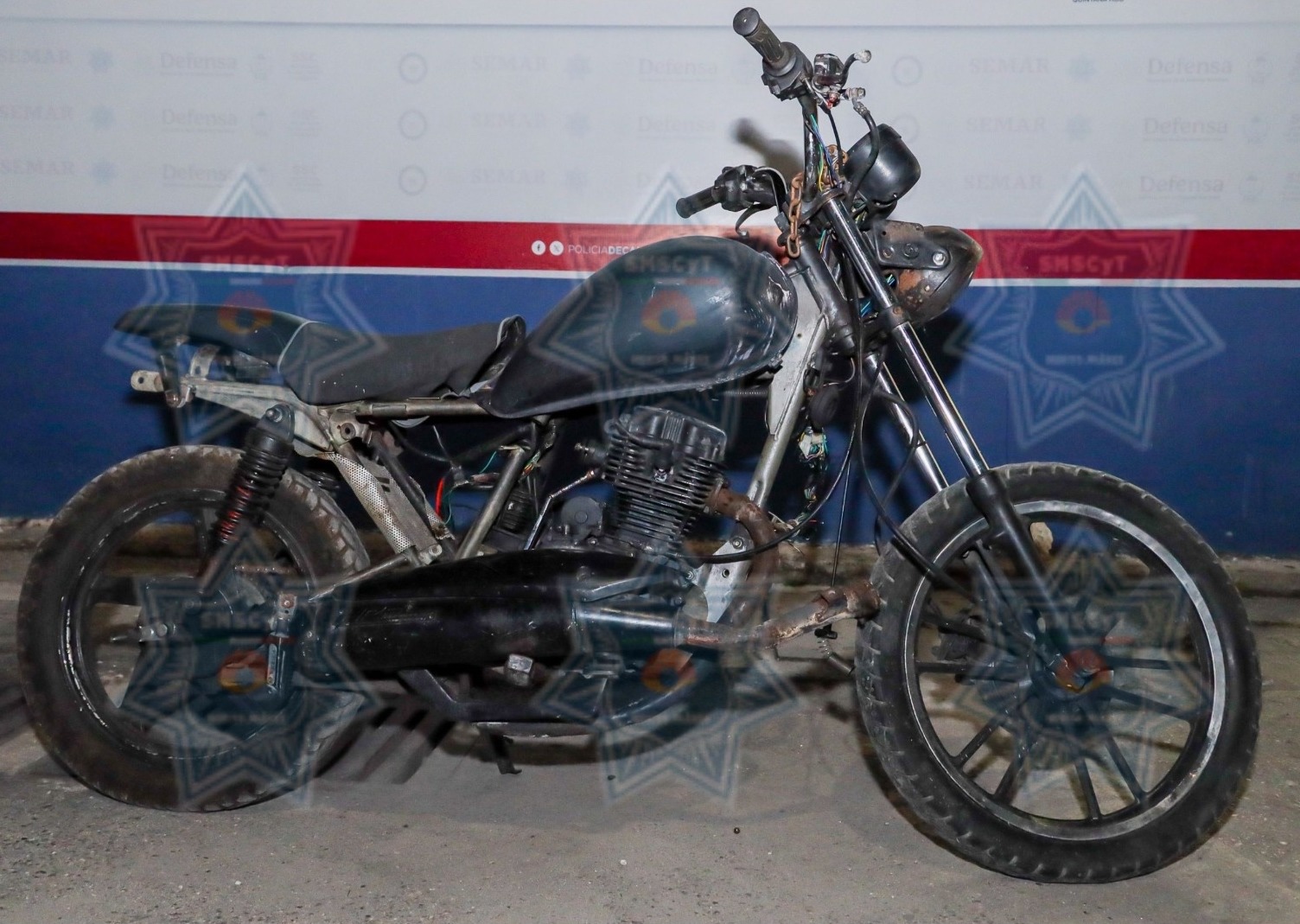 El presunto, quien fue identificado como Eduardo Enrique “N” de 43 años de edad, fue asegurado cuando oficiales que estaban en labores de vigilancia en la Supermanzana 25, se percataron de un masculinoque se encontraba revisando una motocicleta marca Vento, color negro, sin placa de circulación, sobre la banqueta.