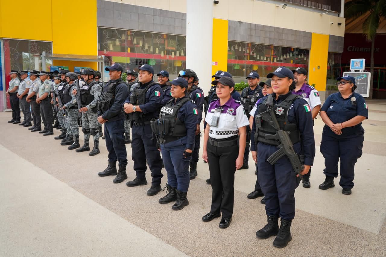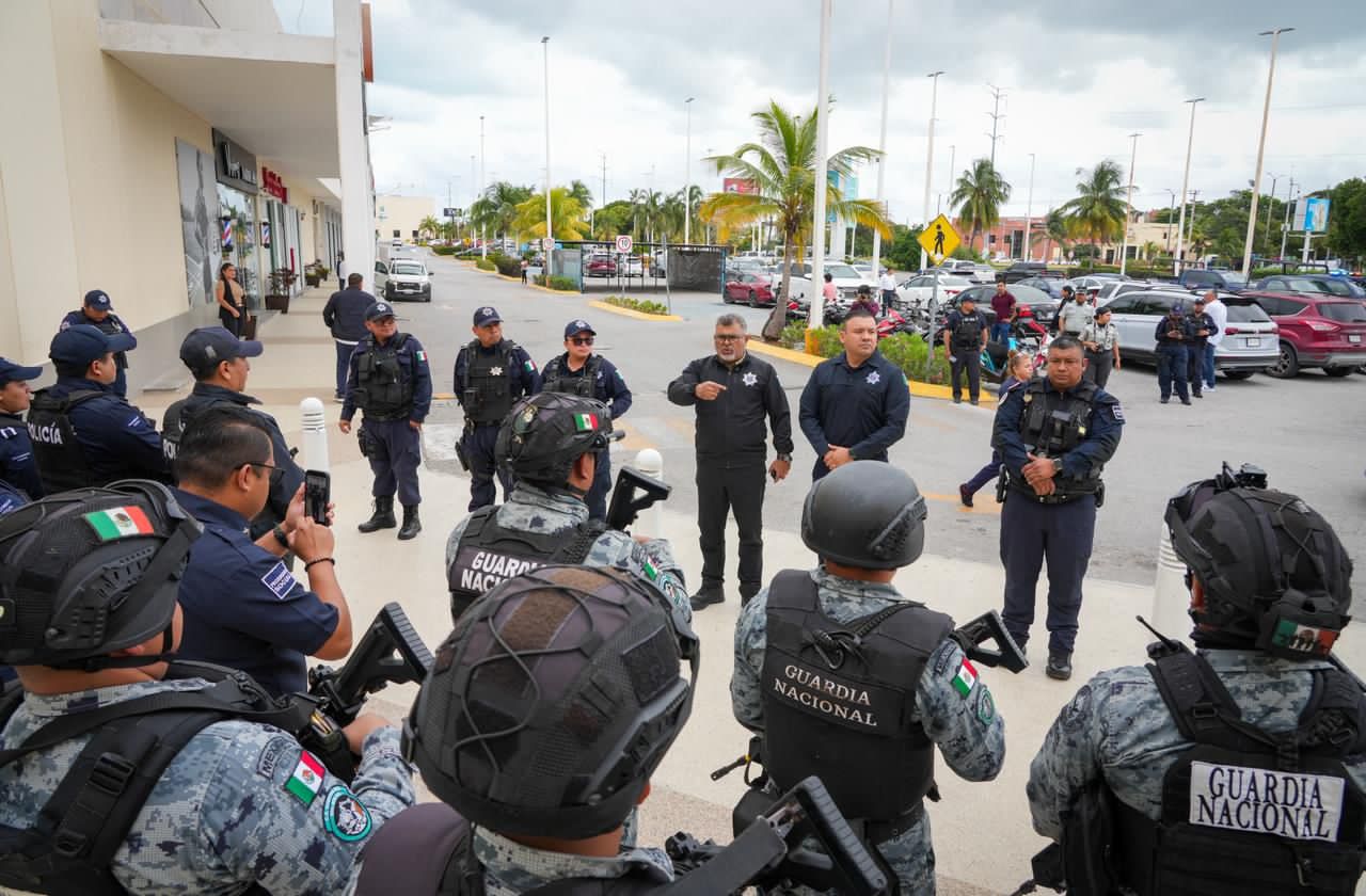 En este marco, el secretario municipal de Seguridad Ciudadana y Tránsito, Jaime Padilla Barrientos, en coordinación con el General de Brigada Diplomado de Estado Mayor, Juan Carlos Guzmán Giadans, responsable de la Coordinación Territorial Región Sureste de la Guardia Nacional, supervisó el despliegue implementado en centros comerciales, con el fin de consolidar estrategias conjuntas que contribuyan a la prevención del delito y al fortalecimiento de la seguridad en el municipio.