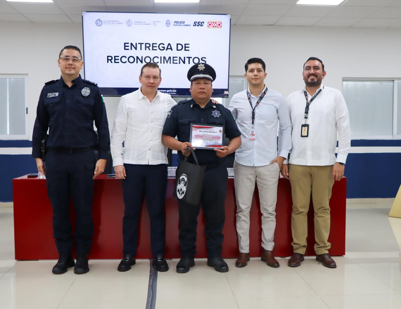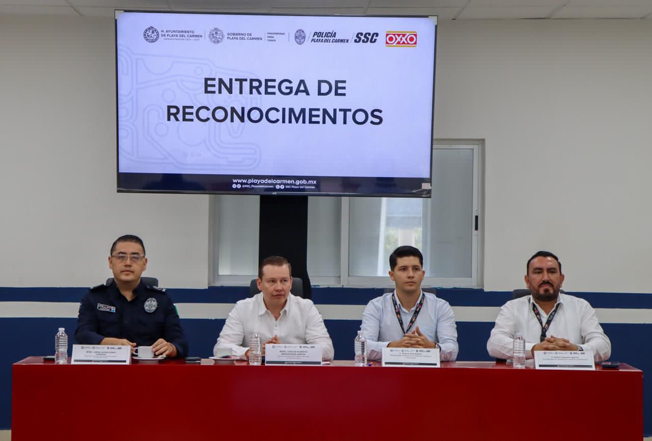 Playa del Carmen, Quintana Roo, 24 de enero de 2026.— En el marco de las acciones impulsadas por la presidenta municipal Estefanía Mercado para fortalecer la seguridad y la coordinación con la iniciativa privada, la Secretaría de Seguridad Ciudadana Municipal (SSCM) recibió un reconocimiento por parte de la cadena comercial OXXO a elementos de la Policía Municipal por su labor y compromiso en la atención de delitos contra comercios.