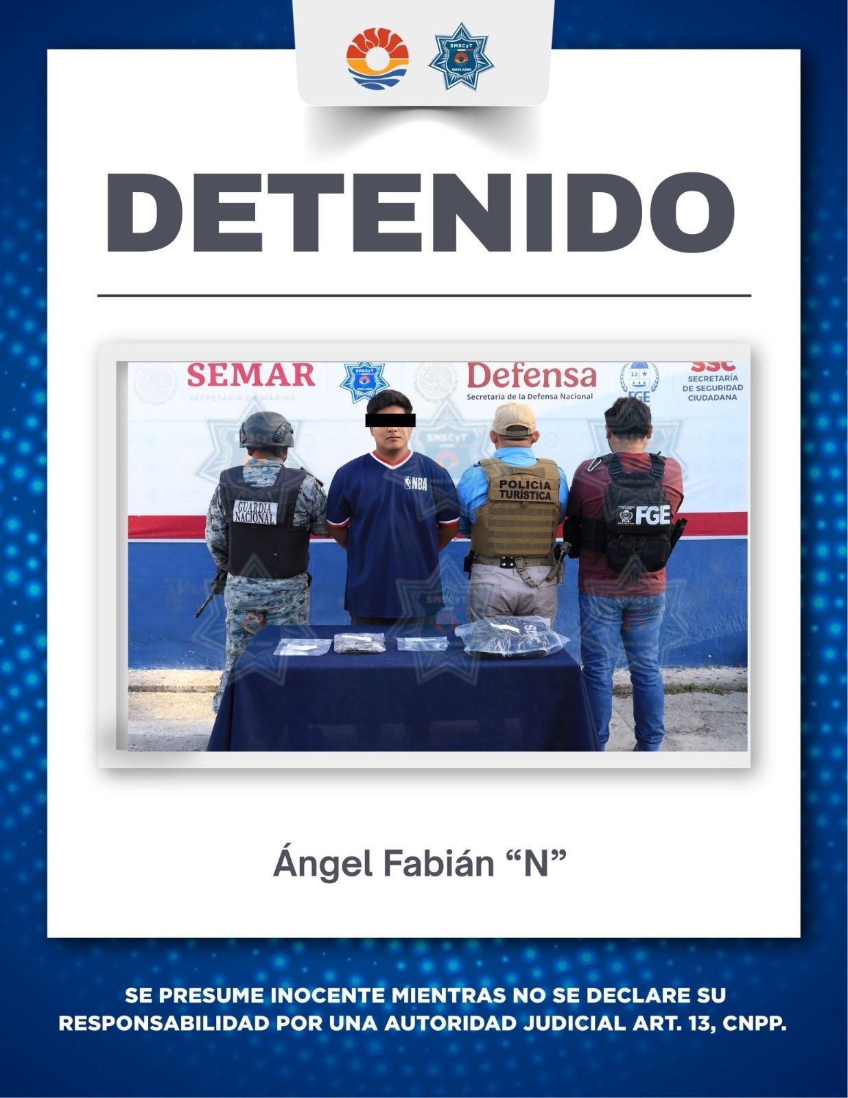 Por lo anterior, Ángel Fabián “N”, de 20 años de edad, fue detenido y puesto a disposición de la autoridad competente para los fines legales correspondientes.