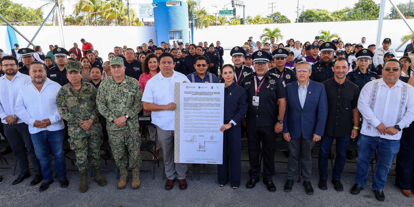 De igual forma, el secretario ejecutivo del Sistema Estatal de Seguridad Ciudadana, Adrián Martínez Ortega, en representación de la Gobernadora Mara Lezama, expresó que se seguirá trabajando de manera institucional con los 11 municipios para la dignificación policial de todos los cuerpos de seguridad.