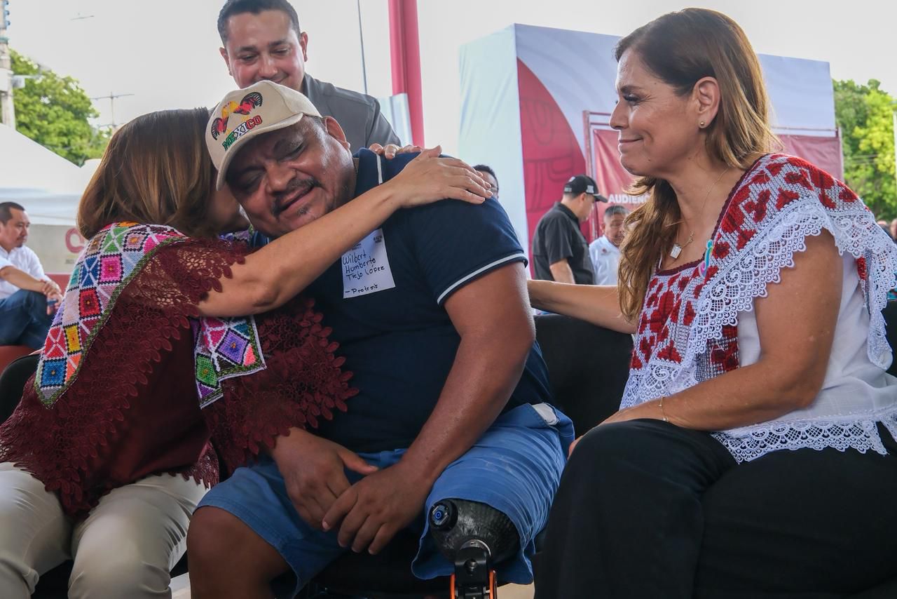 La primera persona en ser atendida fue la señora Karol Paloma Gómez Esquivel. Con la presidenta honoraria del Sistema DIF Quintana Roo, Verónica Lezama, se entregaron prótesis a beneficiarios de Kantemó, San Diego y Dziuché, de José María Morelos.