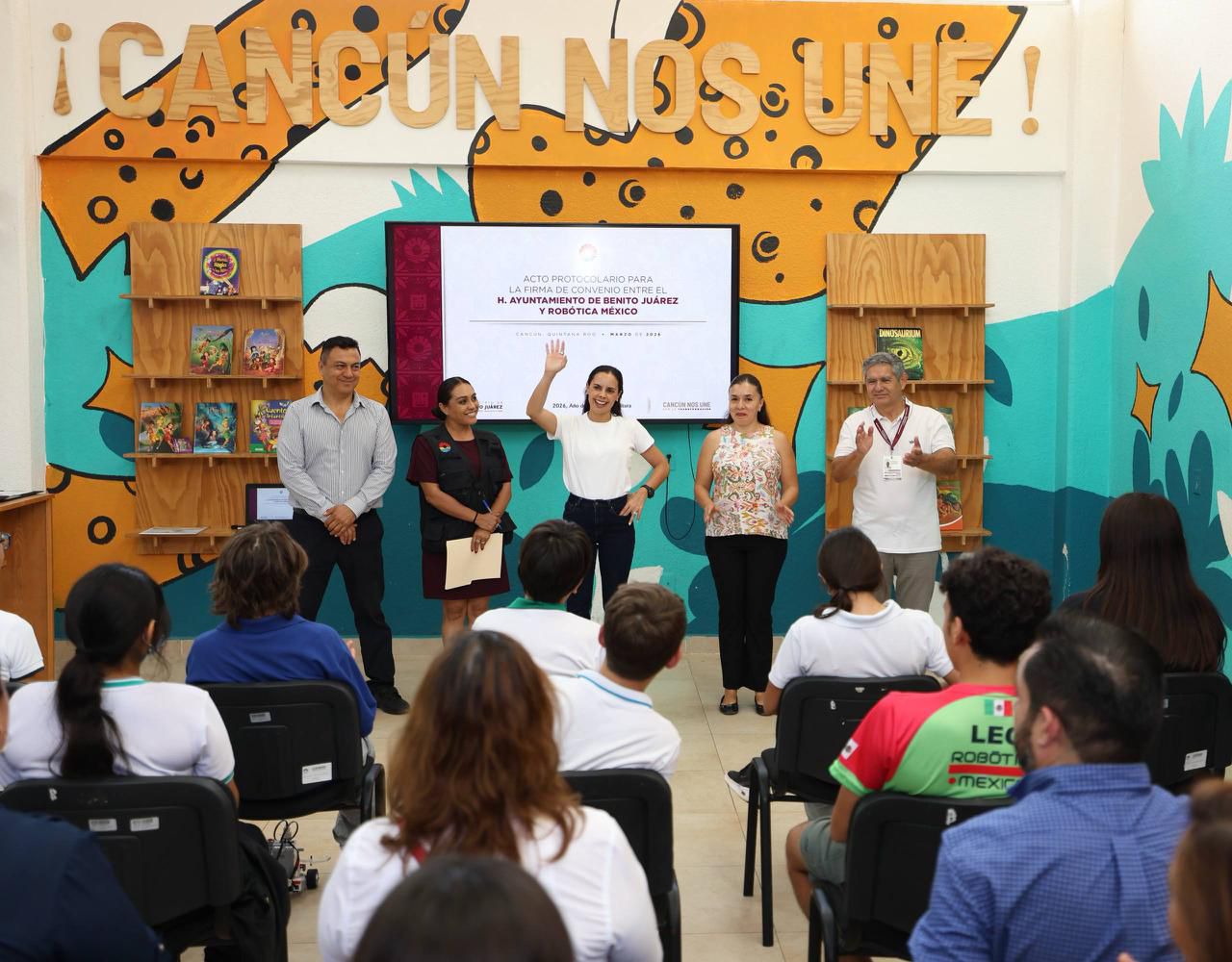 Cancún, Q. R., a 26 de marzo de 2026.- Con el fin de impulsar el talento de niñas, niños y jóvenes, en una apuesta por la educación y la innovación de Benito Juárez, la Presidenta Municipal, Ana Paty Peralta, firmó un convenio de colaboración entre el Ayuntamiento de Benito Juárez y Robótica México, para acercar cursos de robótica con LEGO para ese sector de la población.