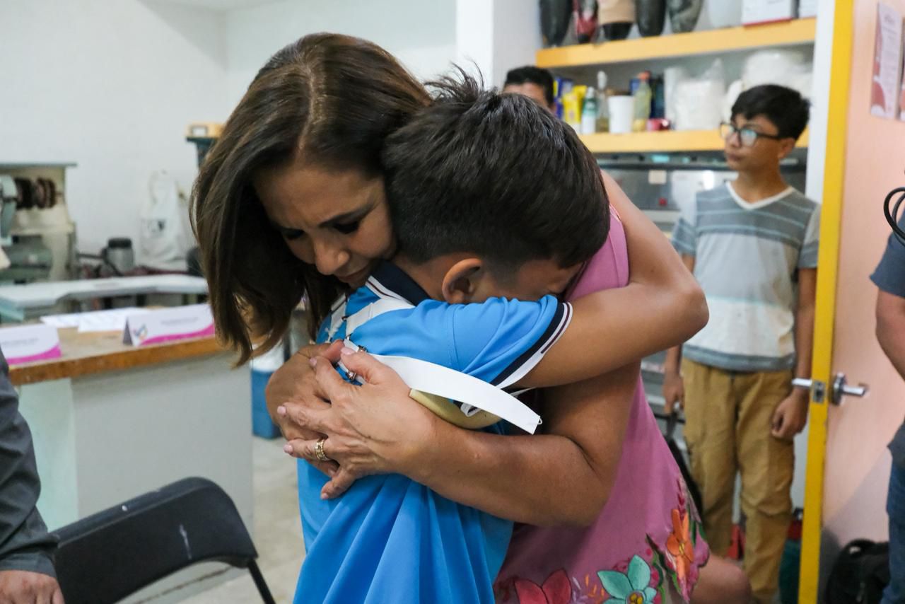 La gobernadora Mara Lezama explicó que seis prótesis ya fueron colocadas al acompañar a Jesús Alberto Xool, de 11 años de edad, quien recibió la suya en un momento significativo para él y su familia.
