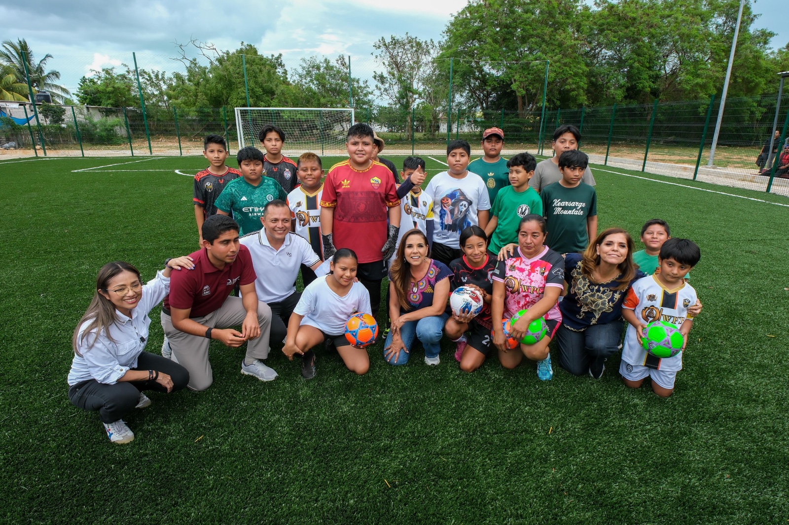 “Queremos que jueguen fútbol, que lleven una vida sana, que hagan deporte y que tengan una cancha cerca de casa”, expresó Mara Lezama, al tiempo que adelantó que se contempla la construcción de al menos 50 canchas adicionales en todo el estado, en coordinación con el gobierno federal, en el contexto del próximo Mundial de Fútbol 2026.